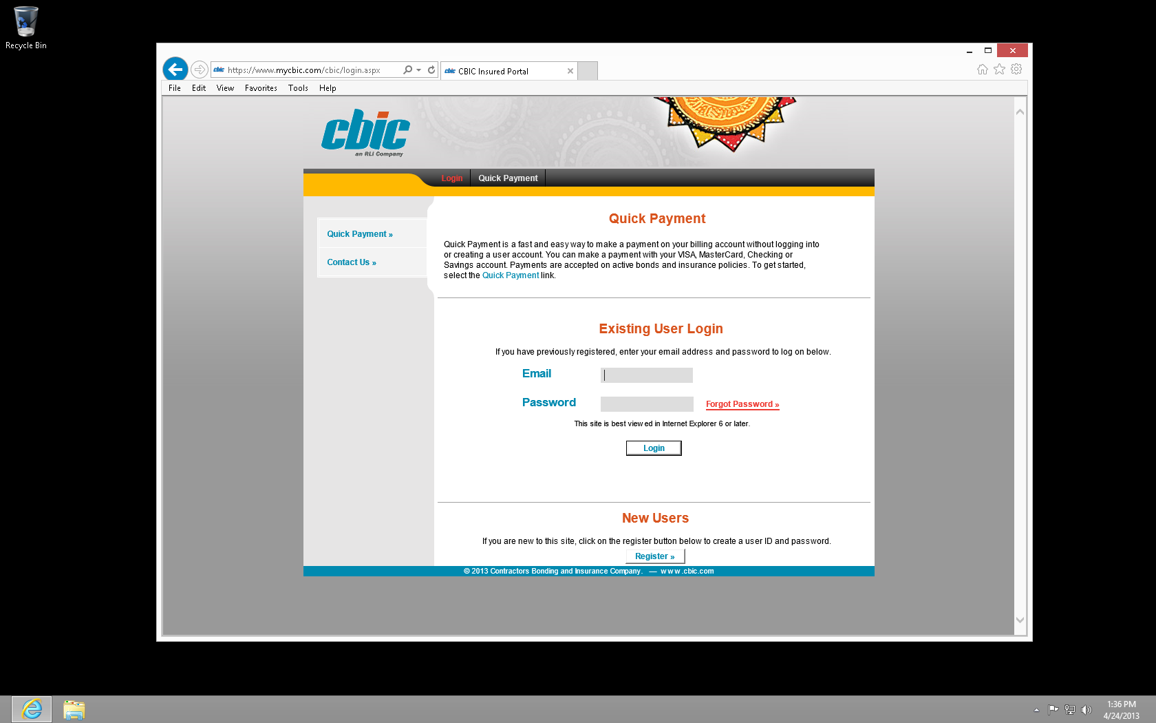 2) When you click on the tile, Internet Explorer will open as shown below. If the address bar is not visible, as shown in